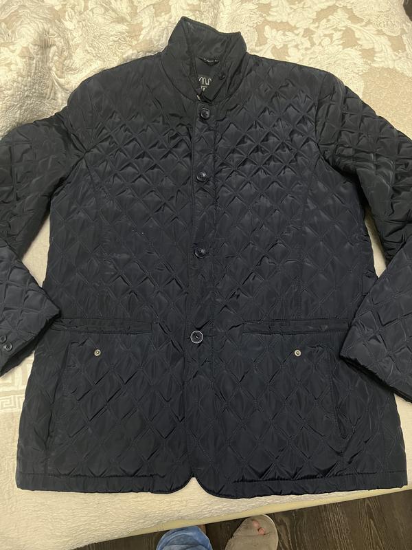 Чоловіка куртка темно синього -чорного кольору , розмір xxl , подовжена , класика , на молнія та ґудзиках , заміри : довжина 82, рукав 67-72, пог 62, пот 62 сзаду ґудзики можно в талії зробити по талії або прямій силует , поб 62 кишені прямі на кнопках та бокові та внутрішні є кишені під молнію