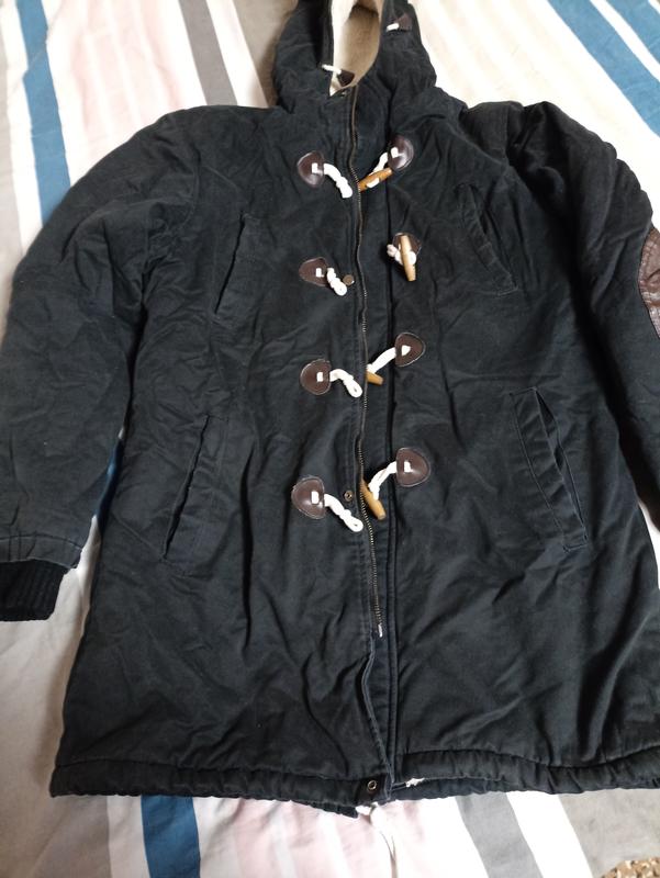теплая куртка в хорошем состоянии, облезла искусственная кожа на накладках.объем 100 длина 77 рукав 67
