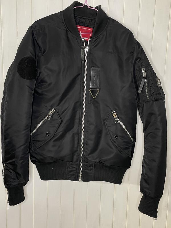 Класний утеплений бомбер, гарно тримає форму. Проліт із розміром. Оригінал, стан нового. Довжина виробу 69 см Півобхват грудей 57 см Пів обхват низу по резинці 42 см в спокійному стані Ширина плечей 43 см Довжина рукава 72 см Заміри зроблені ззовні. На щільному утеплювачі. Оригінал, без дефектів. Розмір S