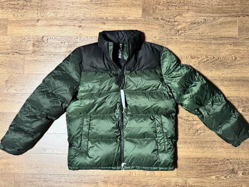 Куртка итальянского бренда Replay ,цвет сочетание чёрного и хаки, в воротнике находится капюшон,состав:верх -100% полиамид,наполнитель-100% полиэстер,производство Китай ,размер XL (маломерит на L),замеры (п/обьём 62,плечи 51, рукава по внешнему шву 71,по внутреннему 53,длина изделия 75).