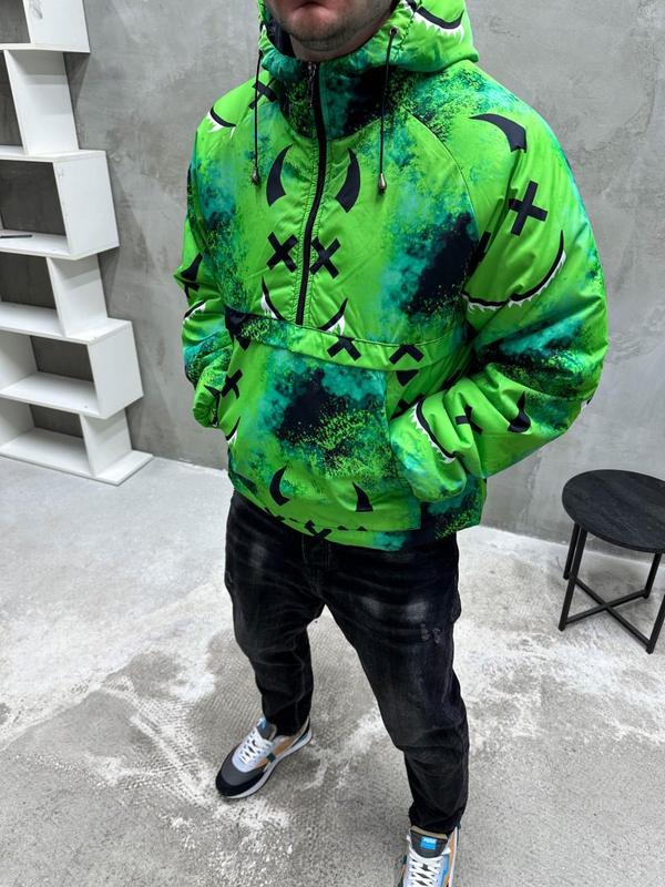 Теплий анорак - це зручна та стильна куртка з капюшоном, яка призначена для захисту від холодної погоди. Теплі анораки виготовляються з водонепроникних або вітрозахисних матеріалів, які забезпечують захист від дощу, снігу та вітру. Це дозволяє використовувати їх як в умовах змінної погоди. Капюшон часто є незамінним компонентом теплого анорака, який допомагає захистити голову та обличчя від холоду та опадів. Теплі анораки добре підходять для активного відпочинку на природі, зимових прогулянок, гірськолижних курортів, а також для повсякденного носіння в холодну погоду. Чоловічий теплий анорак - це функціональний і стильний варіант куртки, який забезпечить комфорт і захист в холодну пору року. Таблиця замірів: РозмірГрудиРукавДовжина кофти S53 см.78 см.67 см. M56 см.83 см.70 см. L60 см.83 см.72 см. XL62 см.83 см.76 см.