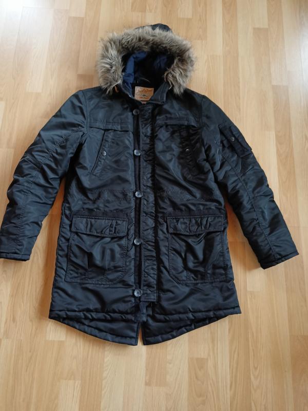 Продам зимнюю мужскую куртку, парка, р.M, может быть на L. Стан идеальный, искусственный мех, удлиненный.