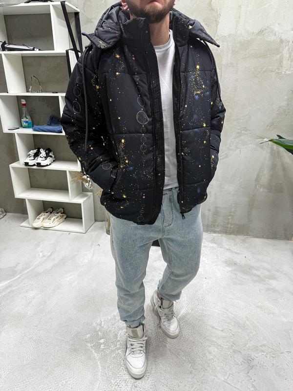 Зимова куртка зі знімним капюшоном — ідеальний вибір для холодної пори року. Виготовлена з якісної плащівки, ця куртка надійно захищає від вітру та вологи, а синтепуховий наповнювач дарує тепло та комфорт. Сучасний чорний колір з акуратним принтом додає стилю та універсальності. Спортивний та повсякденний стиль дозволяє легко комбінувати з будь-яким одягом — від джинсів до спортивних штанів.