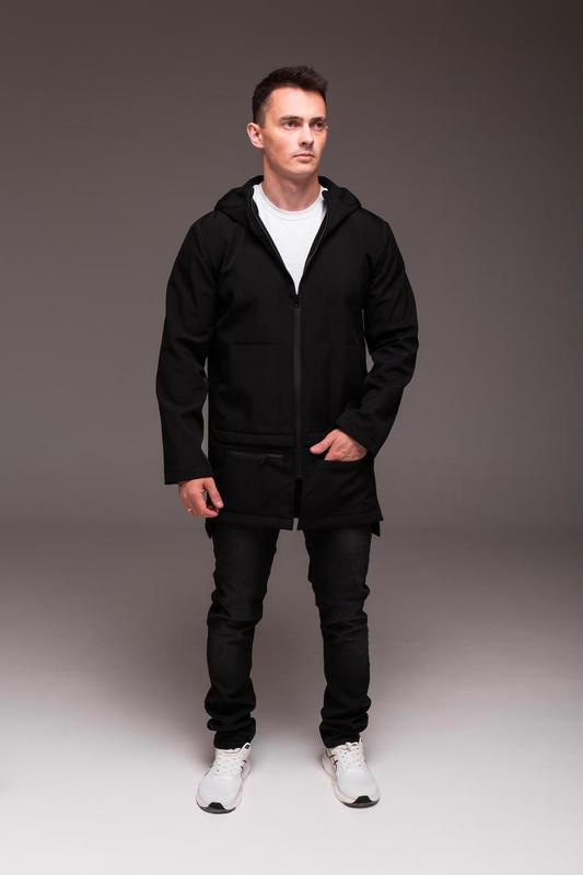 🔶 Артикул: 2282 🥼 Чоловіча куртка чорна подовжене Softshell на флісі 📐 Розміри: S,M,L,XL 👍 Матеріал: Softshell ( поліестер 100% ) , підкладка фліс , 🍁 Сезон: Осінь/весна (+2 /+15)