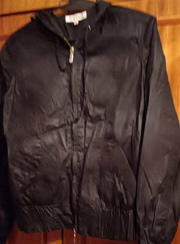 Бомбер на підкладці тканина полірований котон колір чорний капюшон оброблений золотим надписом бренду. Розмір с м