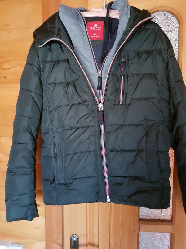 мужская зимняя куртка, серая вставка с капюшоном отшивается