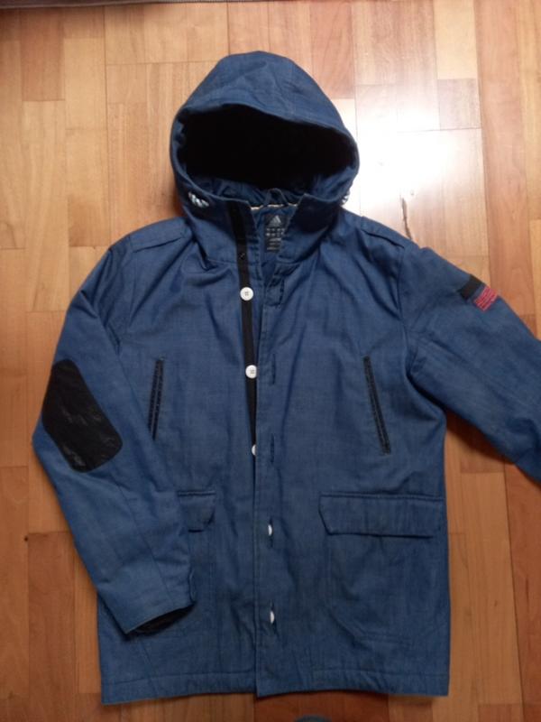 Мужская куртка с капюшоном, длина 74см,плечи 47см,пог 55см.