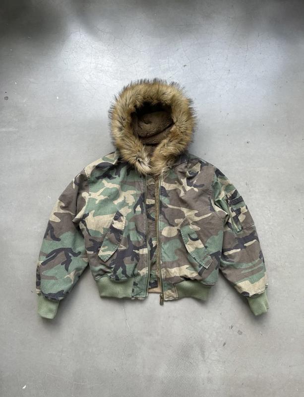 Двусторонний бомбер с камуфляжным принтом с одной стороны и мягкой плюшевой отделкой с другой. Капюшон с мехом. Идеальное сочетание стиля и функциональности для холодной погоды!