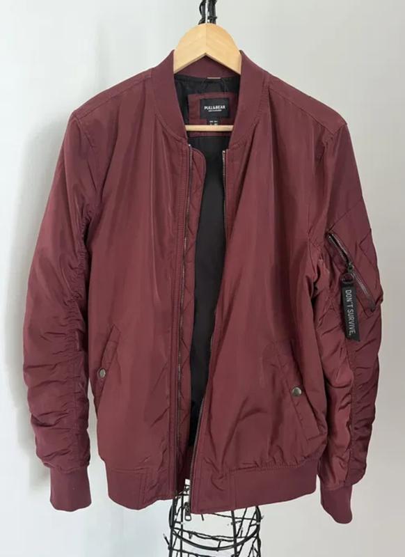 Куртка-бомбер мужская бордового цвета, весна-осень. В отличном состоянии. на одном из рукавов на манжете есть дефект. Плечи - 42, рукав-65, длина-63, объем груди 56