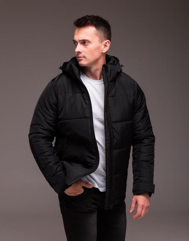🔶 Артикул: 2089 🥼 Чоловіча утеплена куртка чорна знімний капюшон 📐 Розміри: S,M,L,XL,2XL,3XL 👍 Матеріал: поліестер 100% (матова плащова тканина), застібається на прогумовану блискавку, є вітрозахисна планка, бічні кишені та одна внутрішня. Знімний капюшон. Утеплювач синтепон силіконізований – 200. На рукавах липучка на манжетах.