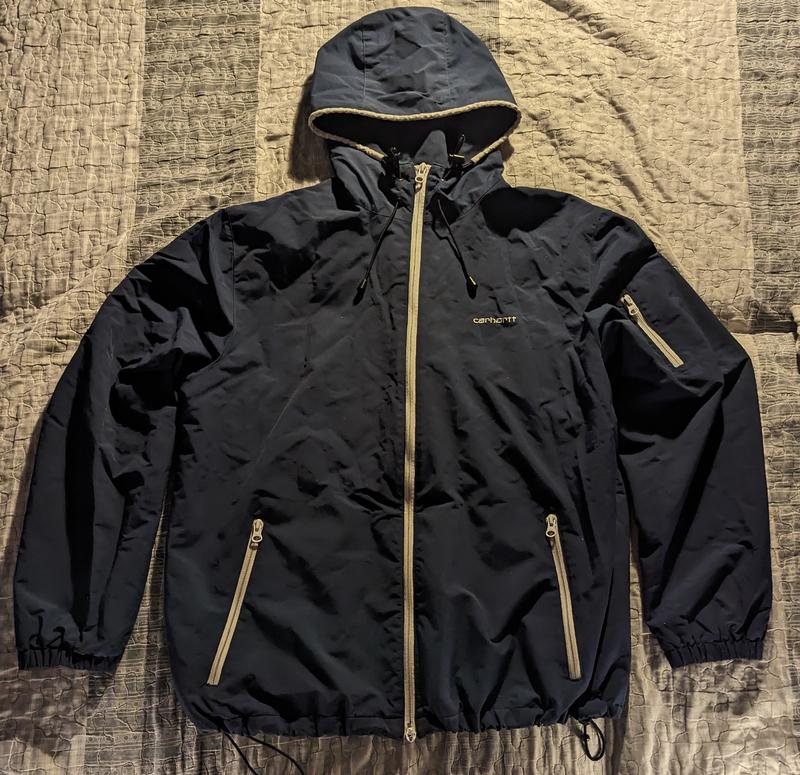 Куртка картхарт в хорошем состоянии хорошо подойдет от ветра на данную погоду Является нюанс с молнией, пряцирует исправно, но нижний бегунок в плохом состоянии Размер: хл Замеры: Полуобхват грудной клетины: 63см Длина рукава по верхнему шву: 65см По нижнему: 51см Ширина плеч по спине: 52см Полуобхват талии:63 (утягивается) Длина самой куртки: 74см Розмвр по бирке: хл Торг