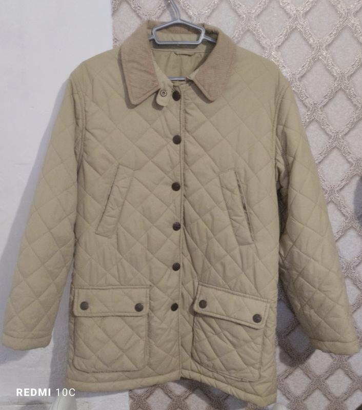Курточка бежевого цвета, имеет прямой фасон, очень красивые стильные пуговицы, стеганная, с внешней стороны 4 кармана, внутри еще один карман на молнии. Ворот - вельвет. Плечи- 46, ПОГ- 55, длина - 80, длина рукава от горловины- 74, от плеча -61, ширина- 59.