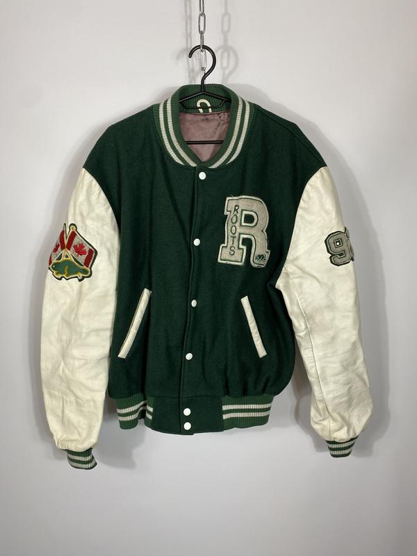 Винтажный,редкий бомбер с кожаными рукавами Размер L-Xl Доп фото дефектов в лс