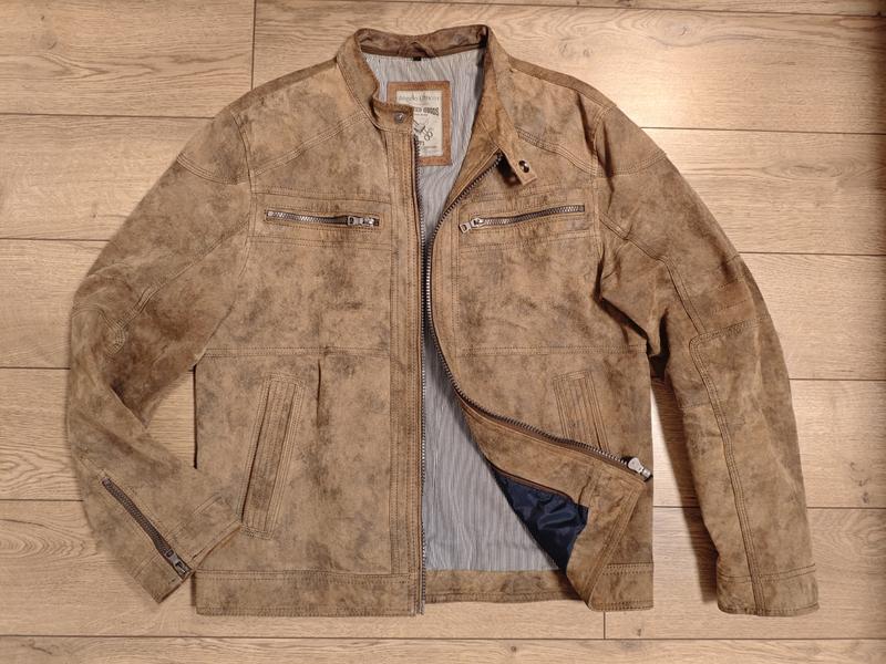 Angelo litrico р. l кожаная мужская куртка стиль байкерская потертая коричневая натуральна...