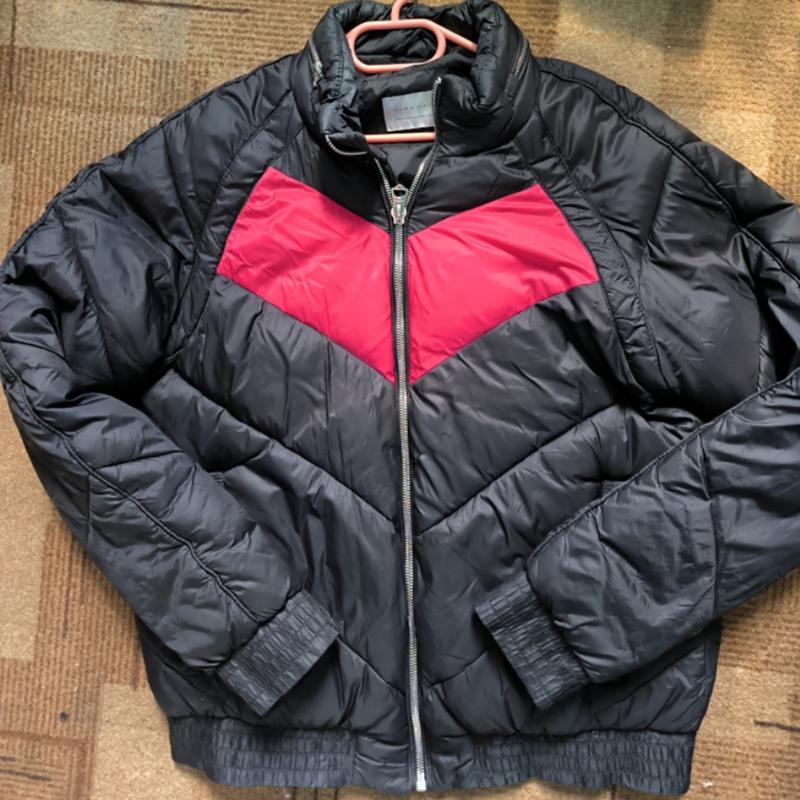 Куртка мужская, но я ее носила с удовольствием. Куртка черного цвета с красными вставками средины, на молнии, имеет два кармана по бокам на кнопках и два внутренних кармана. Есть небольшой дефект, он на последнем фото. У кого есть хист, то можно, например, нашить две ленты симметрично. Подойдет на холодную осень.