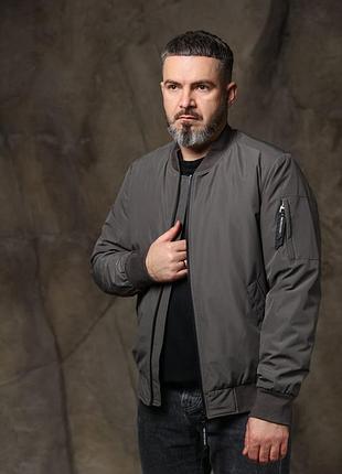 Куртка бомбер чоловіча сезон весна-осінь. Модель виконана без капюшона, має три зовнішні кишені та дві внутрішні на блискавках. Довжина середня, низ куртки та рукава на манжетах. Розміри 52-62. Модель дуже стильна та комфортна.