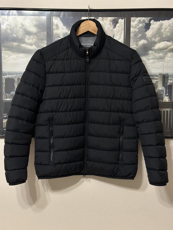 Мужская черная осенне-зимняя демисезонная куртка Marc O’Polo размер М. Стан идеален, новая куртка, в использовании была 2 недели перед тем, как уверен, что немного размер не мой. Не так толста как пуховики, приталенная к телу. При температуре до -5 комфортная, также не жарко при +8. Очень легкая. На фото у меня рост 180 см, да вес 80 кг. Куртка/парка/пуховик Цена 50% от стоимости такой новой сейчас. Стоимость новой на фото. Внешняя длина рукава: 63 см. Ширина плеч: 47 см. Ширина между подмышками: 55 см. Длина по спине (в воротник): 68 см. Ширина в самом низу куртки (пуговицы застегнутые): 48 см. (Резинка)