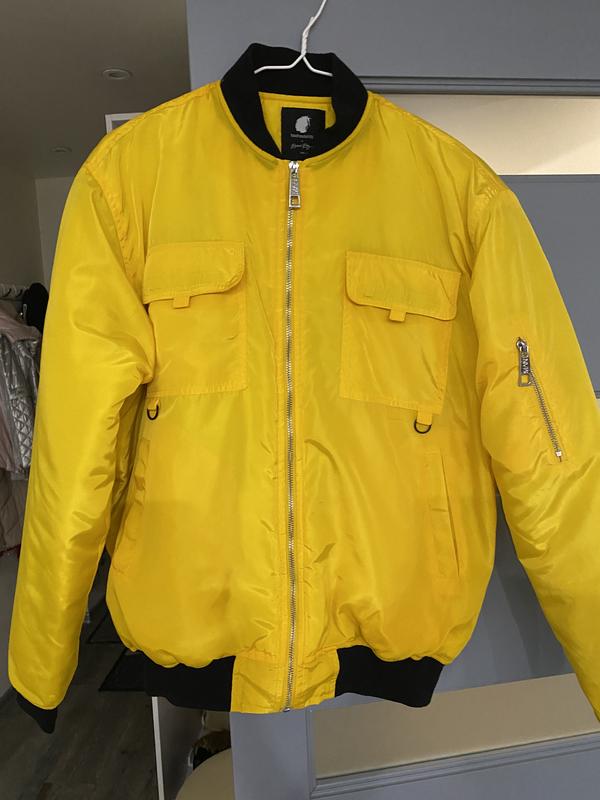 Бомбер жовтого кольору, стильный на синтепоні , у гарному стані, довжина 70 см, ПОГ- 60 см, плечі 49 см, рукав- 65 см