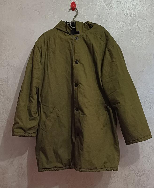 Зимова куртка (парка) оливкового кольору ✔ Состояние: хорошее, без видимых дефектов ✔ Материал: плотная ткань, хорошо удерживает тепло ✔ Детали: Удлиненный фасон (длина 83 см) Теплая подкладка Застежка на пуговицы Глибокий капюшон Два удобных кармана Эластичная резинка на спине для лучшей посадки ✔ Размер: приблизительно XL (ориентируйтесь на пояс 120 см, рукав 53 см) Отличный выбор для холодного времени года! Цена: ХХХ грн (возможен торг) Самовозиватель или отправка по почте Пишите в Директ/Телеграм/***** для деталей!