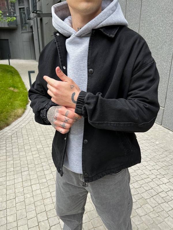 Стильная джинсовая оверсайз куртка в черном цвете 🔝 Артикул : GS2387 - Материал: 100% коттон, топ качество - Made in Turkey 🇹🇷 - 2 боковых кармана Размеры: S, M, L, XL, XXL (полномерные) (при заказе обязательно указывает рост и вес для перестраховки) На фото размер S : ❗️Параметры парня на фото: Рост-178см Вес - 72 кг