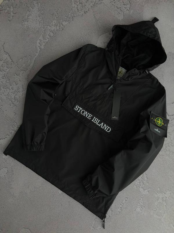 Новинка! Ветровка Цвет: черный 🌈 Производство: Турция Материал: высококачественная плотная водоотталкивающая плащевка Один карман на молнии, регулятор на капюшоне и резинка снизу Размер: S, M, L, XL, XXL, XXXL Логотипи: нашивки