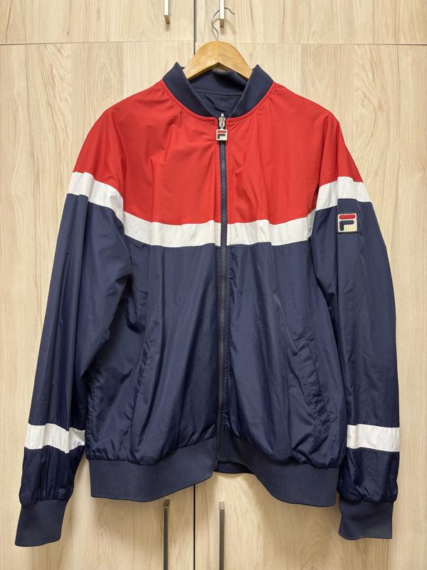 В наявності стильний двосторонній бомбер Fila. Оригінал, розмір XXL (EU/UK), XL (US/CAN). Яскрава сторона з кольоровими вставками та класична синя сторона. Стан: ідеальний Чудово підійде на весну/осінь. За деталями звертайтесь у повідомлення