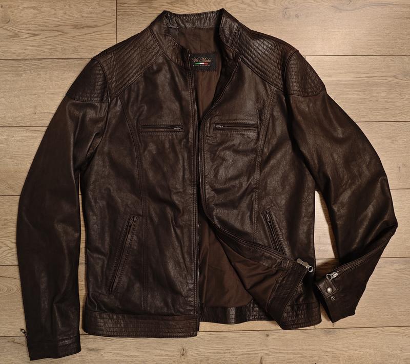 Vit moda р. l кожаная нубук мужская коричневая шоколадная куртка стиль байкерская весенняя