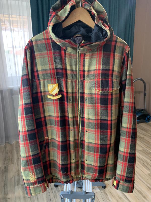 Куртка Burton мужская , клетка. Очень класная, бросается в глаза стильной клеткой. Прикольные змейки на карманах, открываются в верх. На рукаве стильная прострочка в виде руки, на фото указала. Есть нюансы, показала на фото, на рукавах незначительные потертости при носке не видно, сзади протерлось от рюкзака, но кто мастер на все руки можно пришить лейбу прикольную и будете носить с удовольствием. Размер М , можно небольшой Л. ПОГ58, плечи 47, рукав от плеча 70, длина по змейке 77