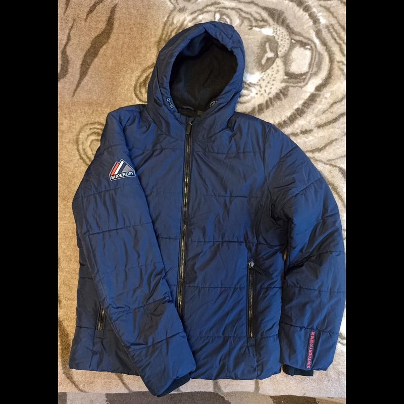куртка syperdry p. M по верху куртка стан супер, Но немного местами сбился утеплитель после стирки, но не критически, доставит носибельно.подкладка теплый флис. цвет темно-синяя.замеры на фото. сезон холодная осень-зима.