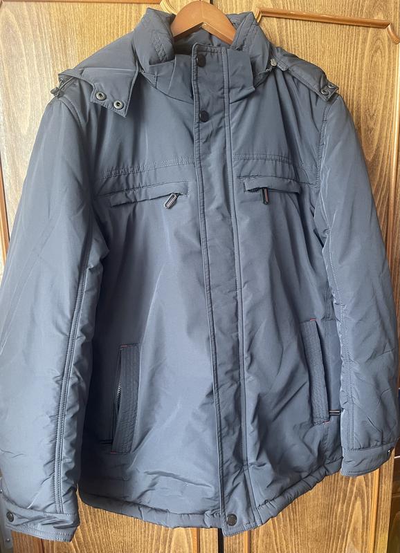 Продам новую куртку мужскую, зимнюю, темно синего цвета на синтепоне с капишоном. Нова. Куплено в Польше. Размер XL/52. Имеет 3 внутренних кармана, внешние 4 на замотках. На рукавах заклепки. Длина куртки 78 см, длина рукава-70 см, ширина в плечах-49 см, полу объем груди- 63 см (это все замеры снаружи куртки).