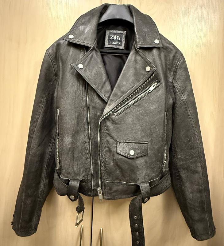 Куртка шкіряна чоловіча (може бути унісекс) zara, розмір s, сіра під вінтаж