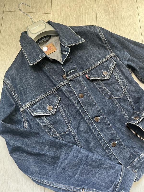 Культова модель куртки Levi’s 70500 04. ( slim)Винтажна модель. Вперше вийшла в 1961р. З 1967р отримала назву Trucker 70500 04,Ця модель стала стандартом для джинсових курток всього світу.Розмір M. Плечі- 43см, груди- 49-50см, довжина- 59см, рукав- 62см, низ- 45см. Джинса щільна, не тягнеться.