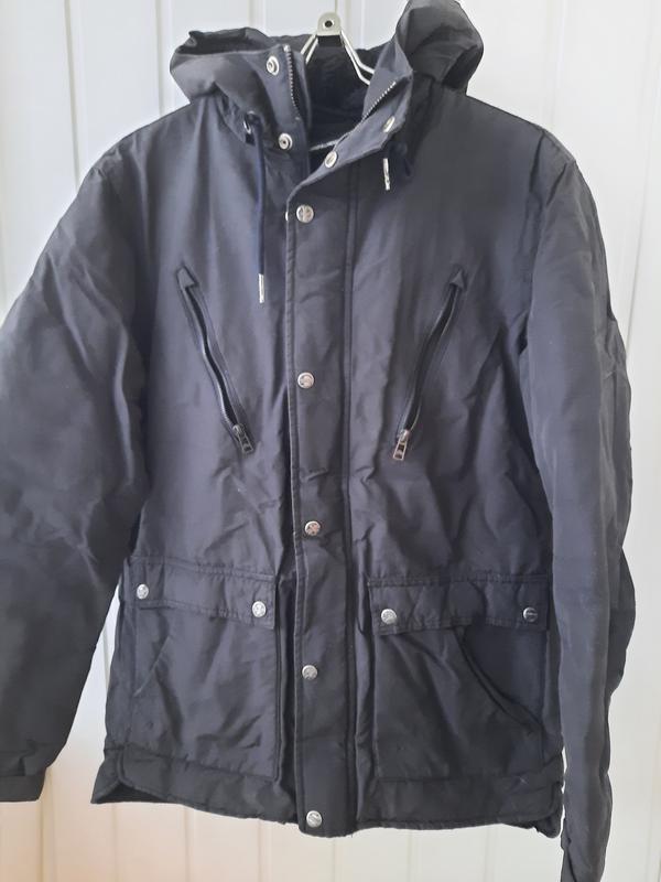 Куртка Pull & Bear мужская. б/у в хорошем состоянии размер L/40, 48 г. цвет черно-синний , мех черный барашек плечи 46 см ОГ 53 см Длина 71 спереди, 74 сзади плечо 12, рукав от плеча 63 см --