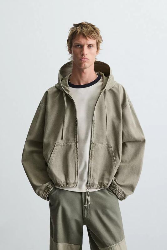 Під замовлення чекати 2-4 днів Куртка вільного крою з бавовняної тканини. Капюшон регулюється, довгі рукави. Передня кишеня-кенгуру. Еластична обробка. Ефект прання. Передня застібка-блискавка. ХАКІ | 1538/328/505