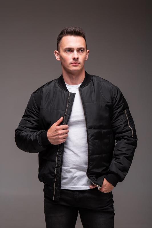 ‼️ Повна наявність‼️ 🔶 Артикул: 1425 чор 🥼 Чоловіча чорна куртка бомбер утеплена 📐 Розміри: S, M, L, XL 👍 Матеріал: поліестер, манжети - резинка, синтепон утеплювач 150 г/м. вітрозахисна планка, дві бічні кишені та одна внутрішня, кишеня на рукаві на блискавці. 🧷 Виробник: Україна 🇺🇦 НАКЛАДЕНИЙ Платіж По Передоплаті Ra