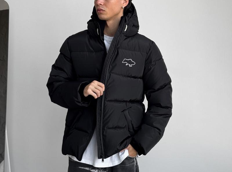 Мужская зимняя курточка с капюшоном, теплая куртка черная