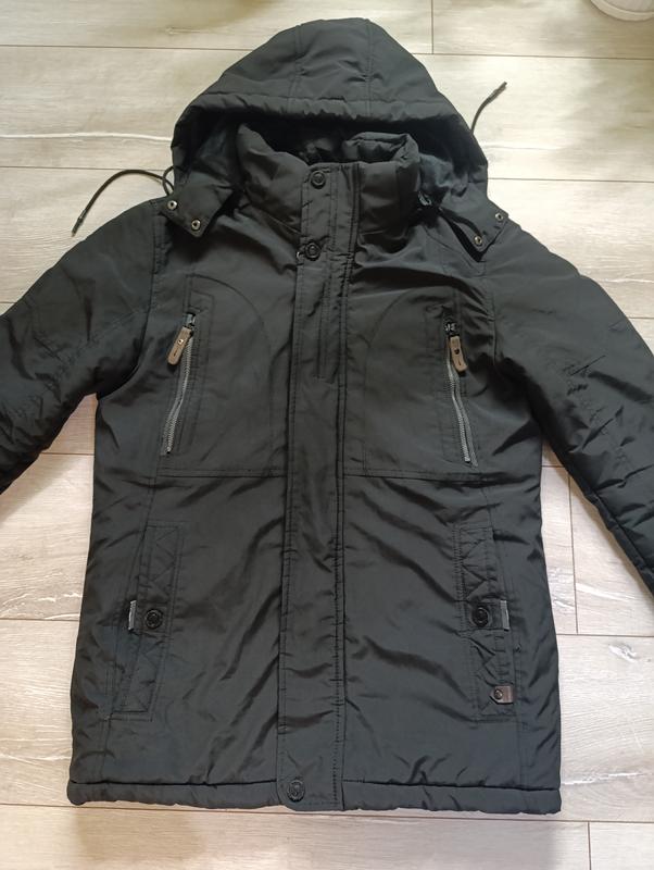 Теплая зимняя удлиненная мужская куртка с капишоном, рукав на манжете, четыре кармана, два внутри