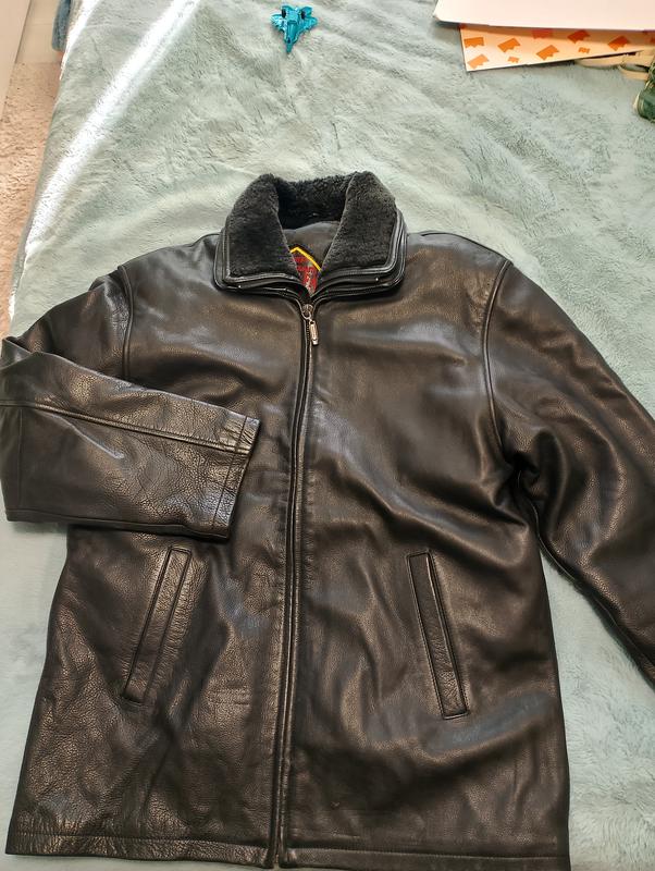 Мужская кожаная курткаXL. Куртка трансформер, можно отстегнуть меховой воротник и подкладку и спокойно носить весной и осенью, как пиджак-куртку. Обхват под руками 124 см.,рукав 63 см, длина 78 см
