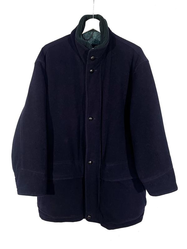 Daniel Hechter Paris чоловіча вінтажна куртка з технологією Gore-Tex. Склад: 50% pure wool, 25% lambs wool, 25% polyamide — тепла та водостійка тканина. Фурнітура Salmi, вінтажні шкіряні ґудзики, чотири кишені спереду. Колір синій, розмір L–XL. Заміри: • Довжина — 85 см • Ширина — 63 см • Плечі — 55 см • Рукав — 58 см
