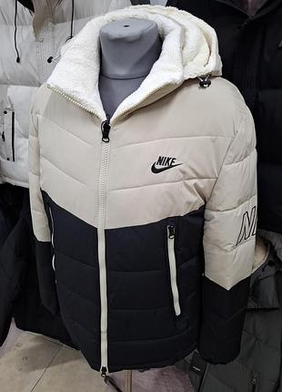 Мужская теплая куртка в бежевом цвете. З штучним хутром. Съемный капюшон. Утеплитель: тинсулейт