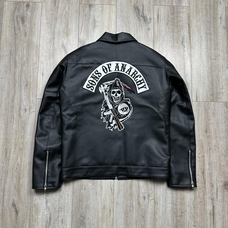 Кожаная куртка Sons Of Anarchy SOA Leather Jacket Размер: Л (сидит по телу, красиво) Состояние: Идеальный (как новая) Куртка сделана из качественного кожзама. Цена новой 130-150$ Длина руки от плеча: 66см Грудь: 57,5см Длина: 67см