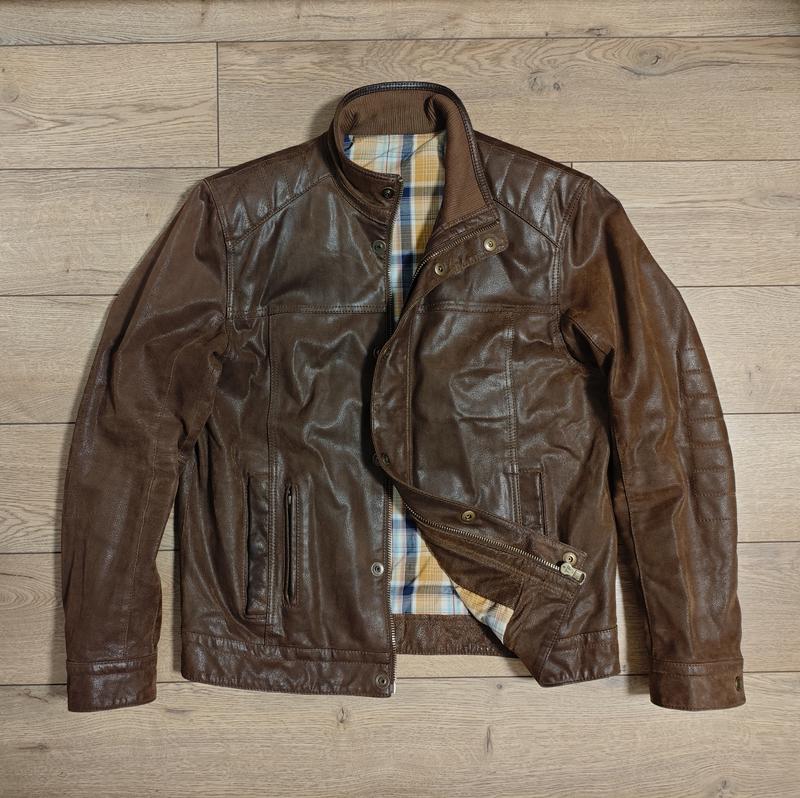 M&s north coast р. l мужская кожаная замшевая куртка коричневая стиль майкерская мото...