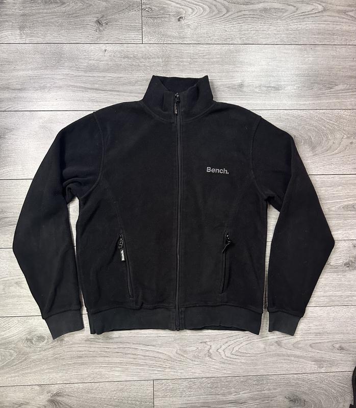 Чоловіча флісова кофта/куртка на блискавці Bench Стан дуже хороший, але є нюанс Резинки на манжеті ( резинка на рукавах ) та низ куртки / трішки втрачений колір тому що бавовна тканина.