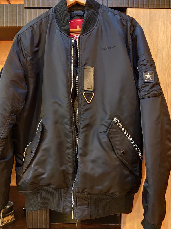 Черный мужской бомбер. Рукава обработаны швами для защиты от неблагоприятных погодных условий. - Декоративная драпировка. - Застегивается на молнию. - Внешние карманы с застежкой. Кому интересен замеры сделать.