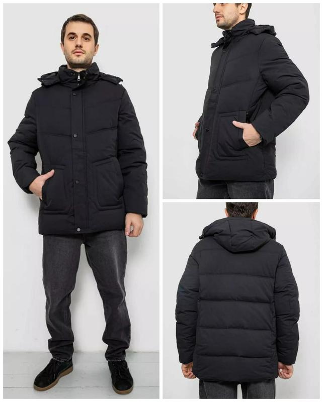 Куртка мужская зимняя удлиненная, цвет черный, 241R2022-21 🎨 Черный 📐 S, M, L, XL, XXL Материалы: верх - 100% полиэстер, подкладка - 100% полиэстер, наполнитель - 100% синтепон