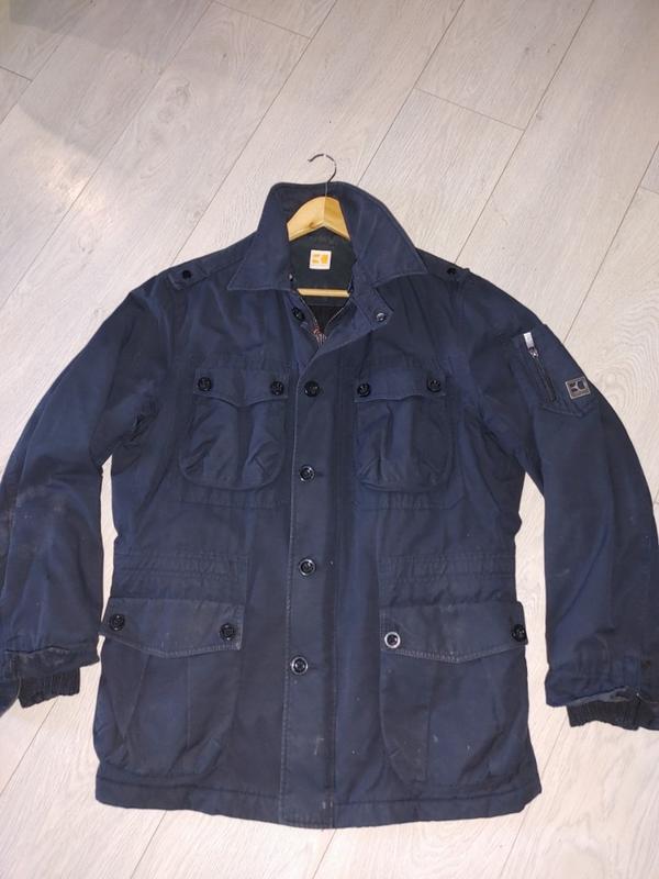 классная, стильная парка на подкладе от Hugo Boss. Имеет брутальный милитари вид Темно-синий цвет, металлическая фурнитура. Без дефектов. Потерянный капюшон, который и не носился никогда. плечи 49 грудь 60 длина по спине 80