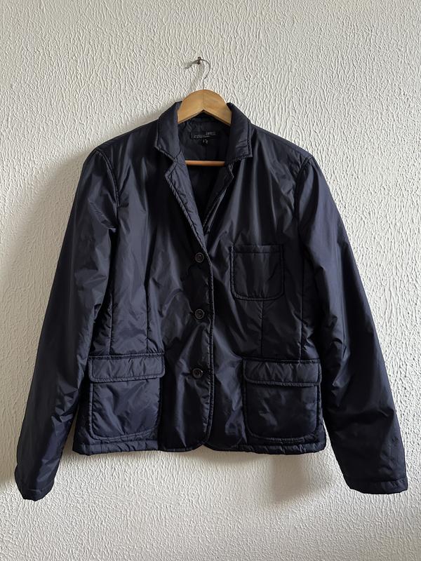 Стильний легкий піджак-куртка від Express by Giorgio Kauten. Класичний крій із трьома кишенями спереду, коміром із лацканами та застібкою на гудзики. Виготовлений із нейлону, з утепленням Thermofill, тому підходить як для осені, так і для теплої зими. Зручний у носінні, легкий, не промокає, поєднує елегантність і практичність. Розмір: XL (по факту M-L) Колір: темно-синій Матеріал: 100% нейлон, утеплювач — поліестер Thermofill Стан: чудовий, без плям і пошкоджень