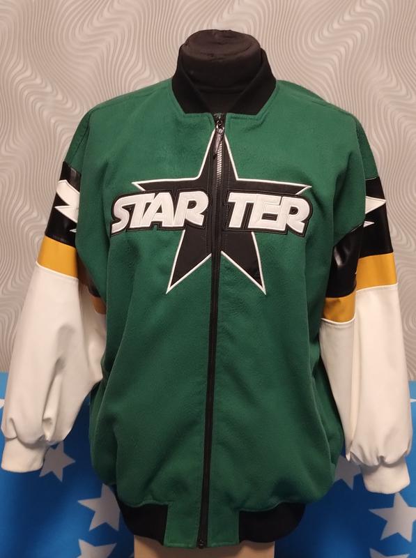 Винтажный бомбер STARTER зеленого цвета в комбинации с белым, черным и желтым цветами р.XL в новом состоянии (нажаль не появился по размеру так как был привезен из-за границы на подарок). Оверсайз, шикарно смотрится как на взрослого мужчины (зрелого мужественных однозначно молодеет!!) так и на парнях. Яркий, теплый в холодные вечера или ранки, из качественных материалов. Плечи (модель де плечи приспущенные) 64, под рукавами 70, рукав 58, длина 76. Рекомендую, очень отличная вещь, редкая на нашем рынке.