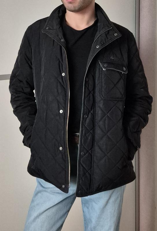 Демисезонная, непродуваемая куртка из плотной ткани.