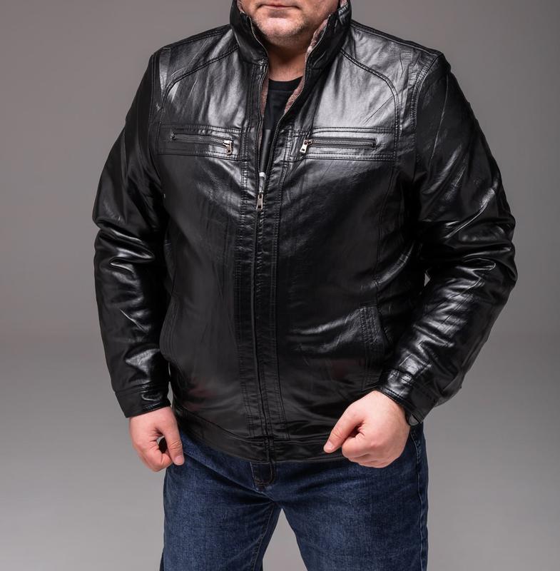‼️ Новая модель!!️ 🔶 Артикул: 2460 ❄️ Мужская черная кожаная куртка на меху БАТАЛ 💵 📐 Размеры: 62,64,66,68,70,72,74 ( маломерки ) 👍 Материал: искусственная кожа, подкладка - искусственно меха, в рукавах - синтепон. Два боковых кармана без застежек, два кармана на груди (на застежках, один внутренний карман. Воротник стойка. 🧷Виробник: Китай 🇨🇳 ➡️ RA ✔️